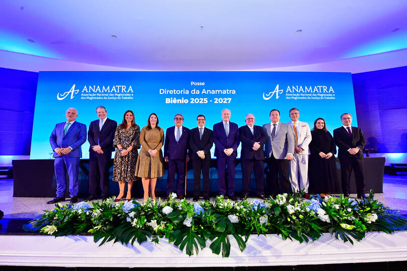 O vice-presidente da ANPT, Marcelo Crisanto Souto Maior, e o diretor legislativo, Tiago Ranieri de Oliveira, participaram nessa quarta-feira (21), da solenidade de posse da nova diretoria da Associação Nacional das Magistradas e dos Magistrados da Justiça do Trabalho (Anamatra) para o biênio 2025/2027. Assumiu como presidente da entidade, o juiz do Trabalho Valter Souza Pugliesi.